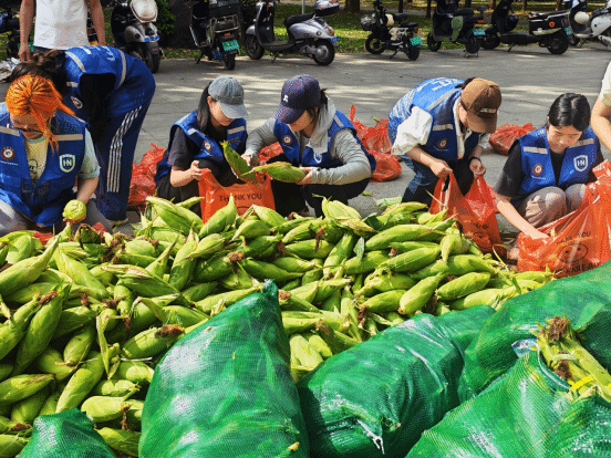 3月26日上午,满载着新鲜玉米的货车抵达校园。学生志愿者来到现场,主动承担起分装、搬运、发放等工作,协助教职工们有序地领取玉米。